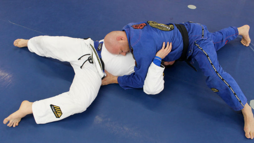 그리고 한 가지 디테일은 왼쪽 엉덩이를 매트에 떨어트려 상대의 머리가 위 사진에 봤을 때에 왼쪽으로 돌아가게끔 하는 게 좋습니다. 그래야 상대에 더 압박을 가 할 수가 있죠.