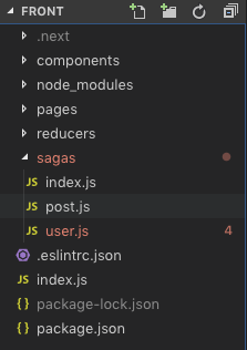 reducers 랑 비슷합니다. index 를 만들고 그 안에 post, user 에 관련된 saga 들을 생성해줍니다.