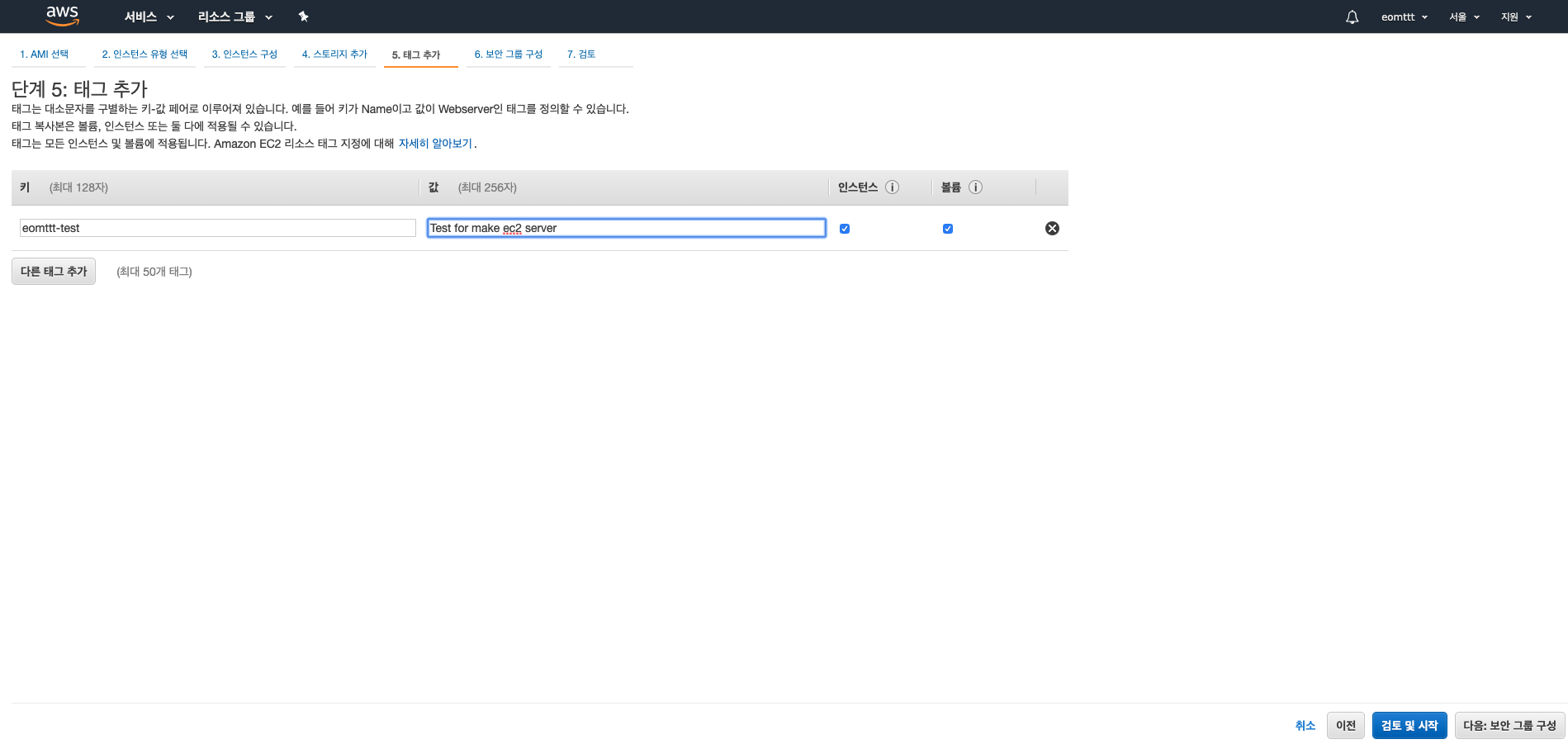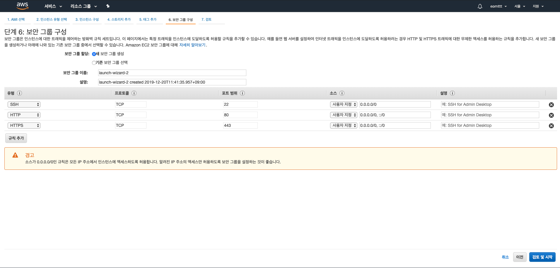 7. 검토 및 시작을 누른 뒤 시작하기 버튼을 누르면 끝입니다!