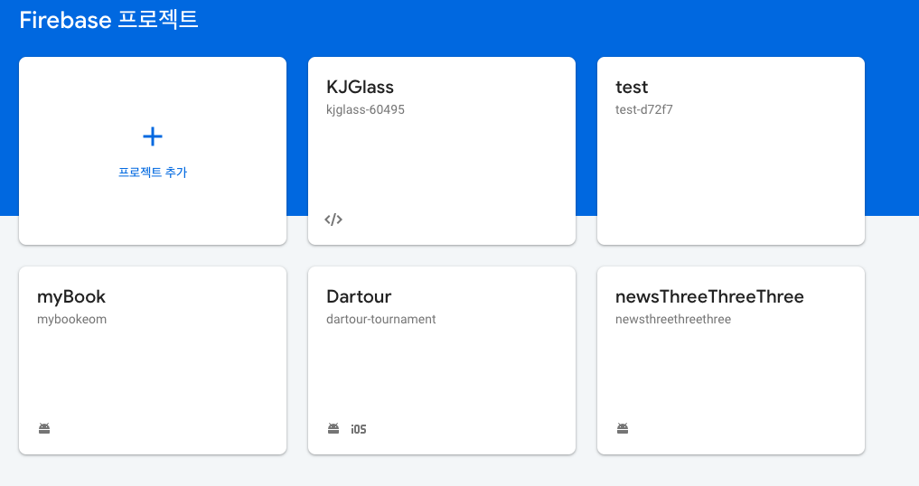 1. 사용하기 전에 먼저 firebase console 로 이동합니다. 만약 프로젝트가 없다면 '프로젝트를 추가' 하셔야 합니다.