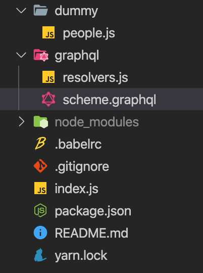 그 다음 노드 프로젝트 내에 폴더에 GraphQL에 scheme, resolvers를 만들어 줍니다.